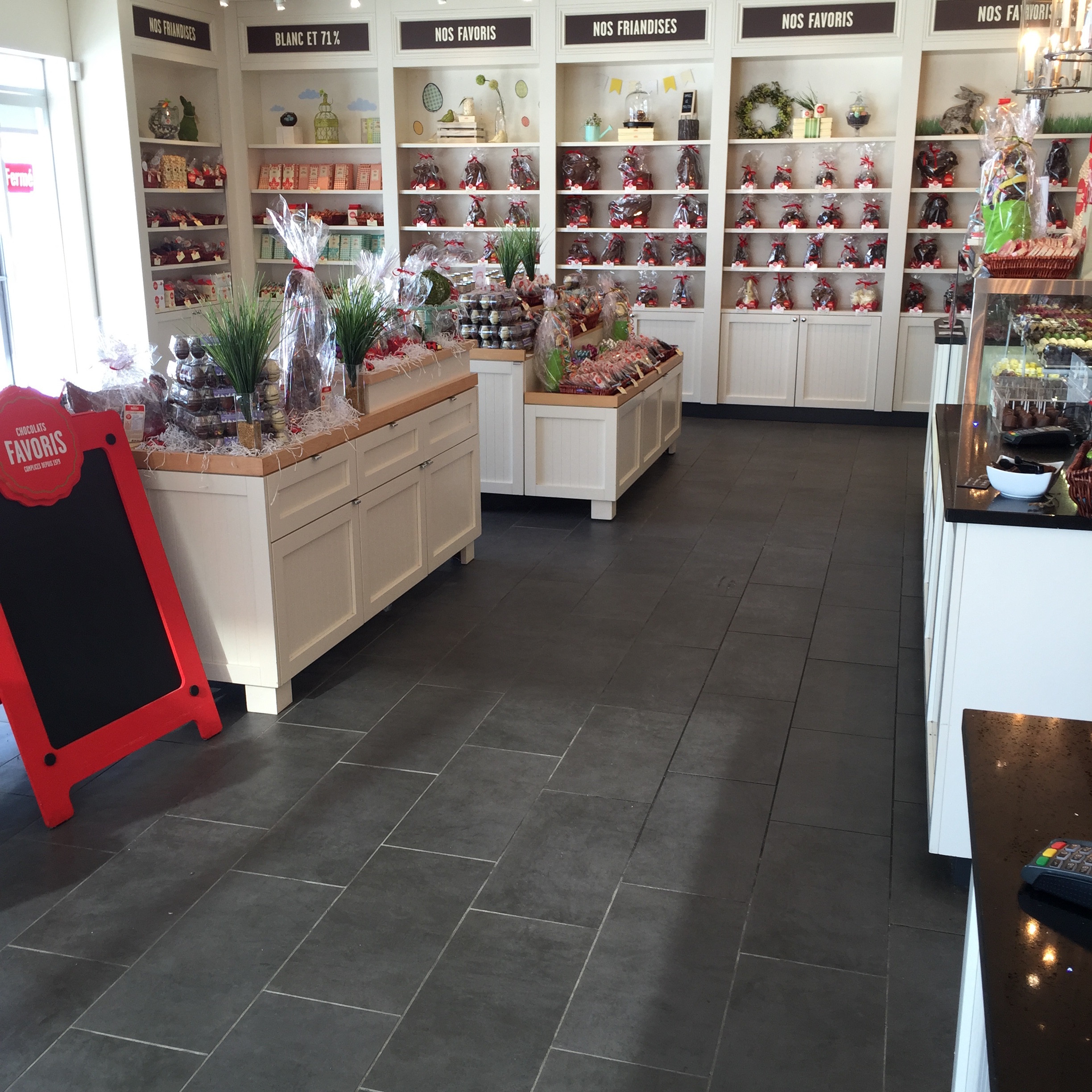 Trois-Rivières Mandat : Réalisation de tous les revêtements de plancher dans le nouveau Chocolats Favoris à Trois-Rivières.